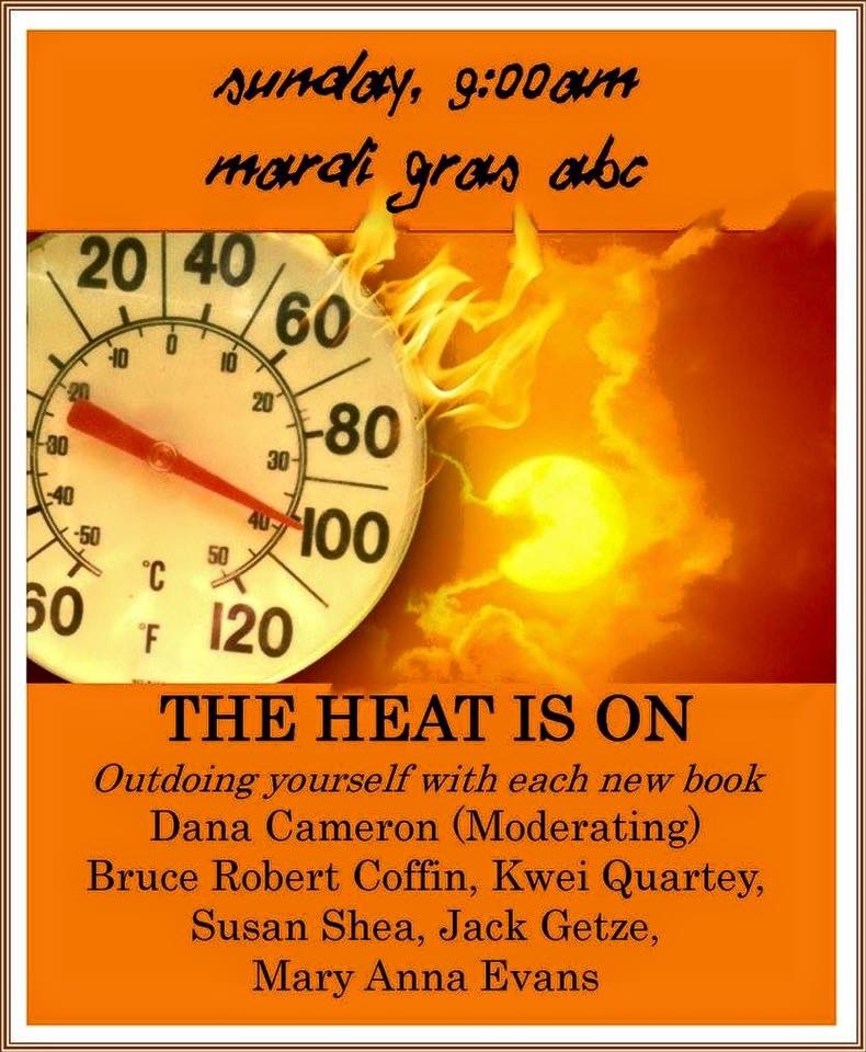 As if all of this wasn’t totally awesome enough, I’ve been chosen to be on a Bouchercon panel! The Sunday morning panel, titled THE HEAT IS ON, will be moderated by Dana Cameron and features yours truly along with Kwei Quartey, Susan Shea, Jack Getze, and Mary Anna Evans. We will be discussing how authors outdo themselves with each new book. Hey, how exactly does that happen?